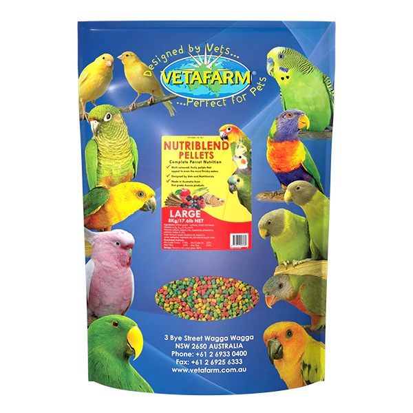 - Vetafarm recommends that parrots are fed a minimum of 10% of their bodyweight in pellets per day.