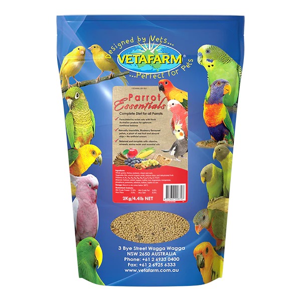 Parrot Essentials supplies the balance needed for optimum health (feather development, tissue and brain function), while also offering variety into the daily diet with the inclusion of hand-selected fresh fruit and nuts from Australian farms.