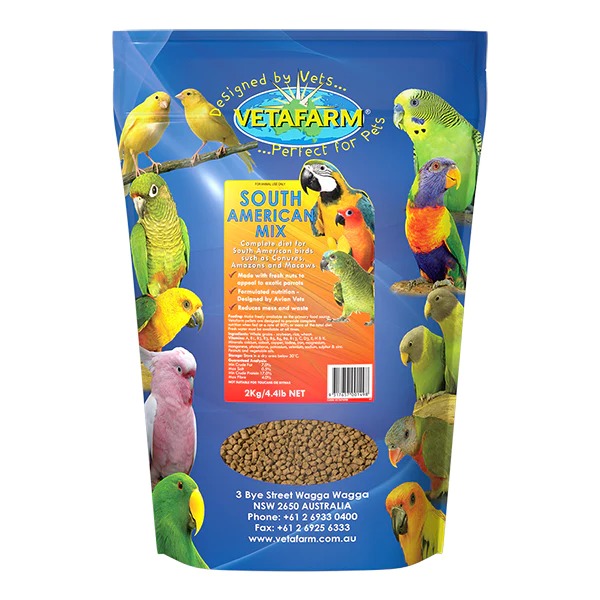 South American Mix was formulated by avian veterinarians to meet the nutritional needs of South American parrots for both breeding and companion birds. This product provides nutritional balance for growth, breeding, brain function and optimum feather development when fed at 80% of the total diet.